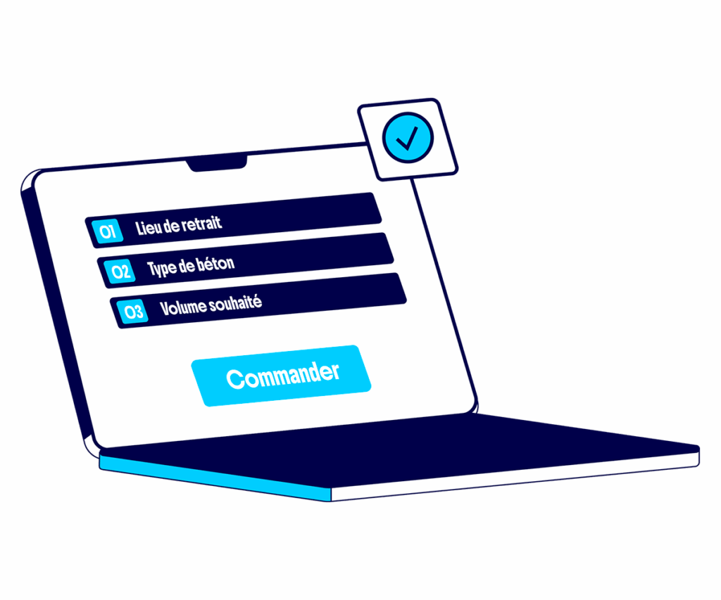 Vous commandez votre béton directement en ligne. Vous choisissez la recette et la quantité, puis vous payez au moment de la commande. Une fois sur place, vous scannez le QR code reçu par e-mail : le béton est fabriqué à la minute, selon votre recette. Vous chargez, vous repartez.